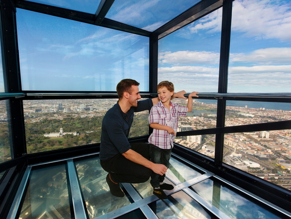 是世界上最高的住宅大樓,我們將帶領您登上快速電梯抵達88層樓的觀景台,俯瞰整個墨爾本市區;當然您可另外自費在這天台中進入一個媲美美國大峽谷的天空步道--「懸崖箱」,從這個全世界獨一無二的市區天空步道中,體驗刺激的快感。