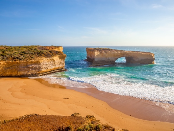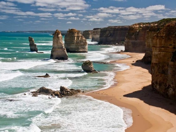 這些石灰岩高聳石柱經一至二千萬年侵蝕而成,是大洋路上的亮點。別忘了在泰迪觀景台(Teddy’s Lookout)停一停,從陡峭懸崖上,欣賞聳立在海面的著名海堆。