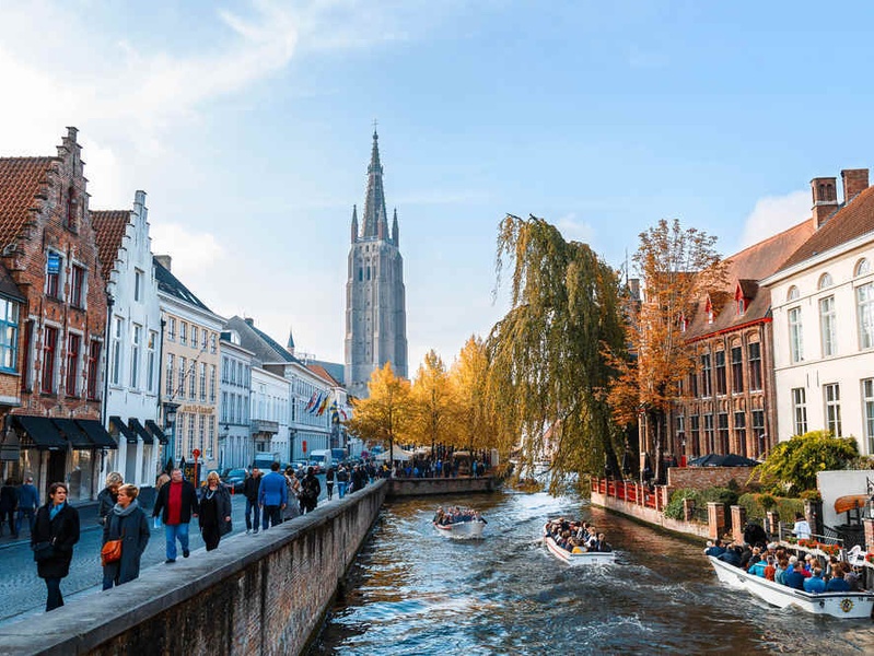 這座迷人的中世紀小鎮,因過去佈滿大大小小的運河,至今仍有50座以上古橋而得名(Bruges荷蘭語是「橋」的意思),是一座名符其實的水都,因水而發展,也因水(河道淤塞)而沒落。但舊市區內盡是古意盎然的石板道、文藝復興時期的建築,隨著沿岸建築搭配綠意籐蔓,散發另類的古樸之美,彷若一幅幅山水名畫至於眼前,素有「小威尼斯」之稱。