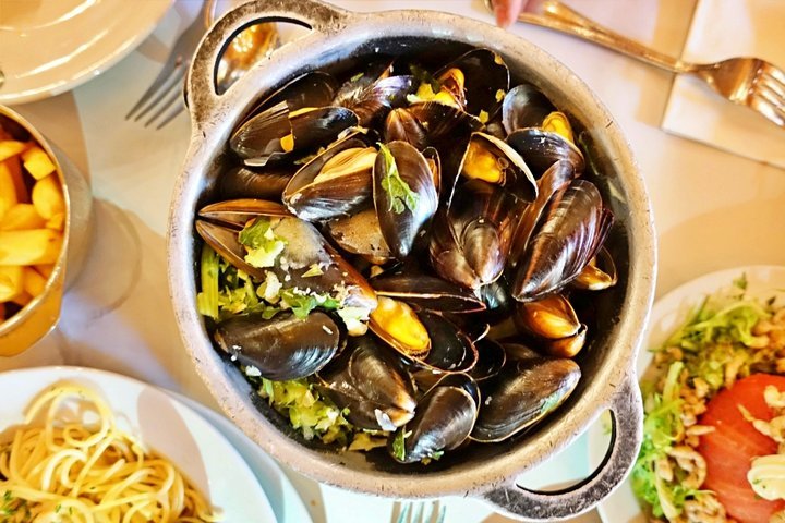 比利時淡菜鍋+鬆餅 淡菜鍋:比利時的國民美食淡菜個個碩大肥美,用奶油醬汁加上洋蔥、西洋芹與白酒燉煮,鮮美可口。 布魯塞爾鬆餅:比利時有兩種鬆餅,布魯塞爾鬆餅是用打發的蛋白混入麵糊,口感輕盈,鬆鬆脆脆。列日鬆餅則較甜膩厚實。 參考菜單:淡菜鍋(一人一鍋)/肉醬義大利麵/布魯塞爾鬆餅 (每季更換菜單,菜單僅供參考)