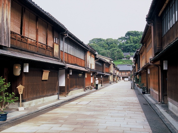 與京都、奈良等地並駕齊驅的古都,是日本政府除了京都祇園之外,唯一指定的茶屋街國家文化財。兩層樓的木造樓房和成排的細格子門窗,讓整條街瀰漫於古色古香中。為日本傳統的遊藝‧飲食場,在江戶時代是觀賞藝妓及演奏的場所。 進入茶屋街內部後,能看到非常綿密幾乎要讓人迷路的街道,經過重新裝潢的古老建築物現在成為飲食店與喫茶店或是土產店。