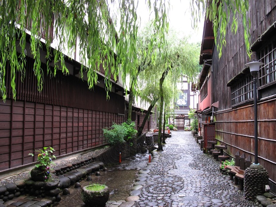 與京都、奈良等地並駕齊驅的古都,是日本政府除了京都祇園之外,唯一指定的茶屋街國家文化財。兩層樓的木造樓房和成排的細格子門窗,讓整條街瀰漫於古色古香中。為日本傳統的遊藝‧飲食場,在江戶時代是觀賞藝妓及演奏的場所。 進入茶屋街內部後,能看到非常綿密幾乎要讓人迷路的街道,經過重新裝潢的古老建築物現在成為飲食店與喫茶店或是土產店。