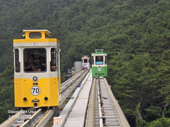 2021年新開幕釜山特色體驗遊樂設施,Skyline Luge利用下坡重力加速度,讓體驗者宛如賽車手般奔馳,且搭乘纜車上山的過程可一覽釜山樂天樂園與海景,園區一共有四條路線,相加起來總長約2.4公里,園區會依照當日的旅客量來決定開放兩條或四條賽道。斜坡滑車操作簡單,都會有專員先教學如何控制滑行、停止及方向操作等。景觀纜車:乘坐纜車時可以眺望無敵海景,還可看到旁邊的釜山樂天樂園唷。