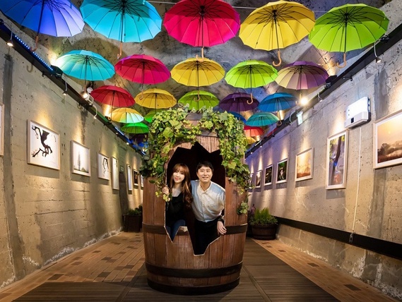 金海地區的新興熱門景點,將廢棄的鐵道改裝為酒窖,在入口處有火車改裝的咖啡列車及橡木桶造型的入口。洞窟裡面的溫度及濕度特別適合擺放紅酒,夏天來到這裡能夠感受清涼的感覺。