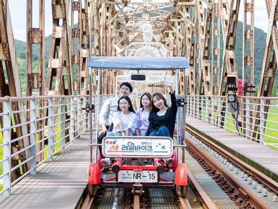 金海洛東江鐵路自行車全程來回約3公里,是穿越鐵橋,能飽覽洛東江景色的休閒運動。不僅能感受踩著鐵路自行車行經復古鐵橋的特別體驗。