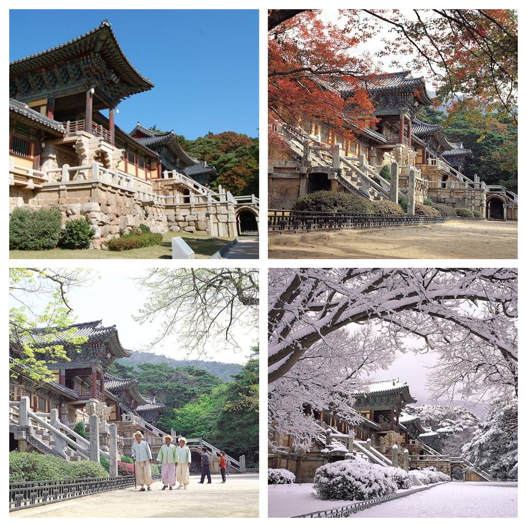 佛國寺為1995年被指定為世界文化遺產,建於新羅時代的公元751,直至774年完工,雖歷經1500年歲月,卻能顯示出其精巧的石雕工藝,迴廊與大雄殿以鮮明的丹青塗飾,安置釋迦牟尼像的寶殿內部色彩華麗,多寶塔雕刻優雅美觀,釋迦塔、極樂殿、毗盧殿內的阿彌陀佛與毗盧舍那佛像等眾多的國寶與文化遺產都顯示著當時新羅文化的登峰造極。