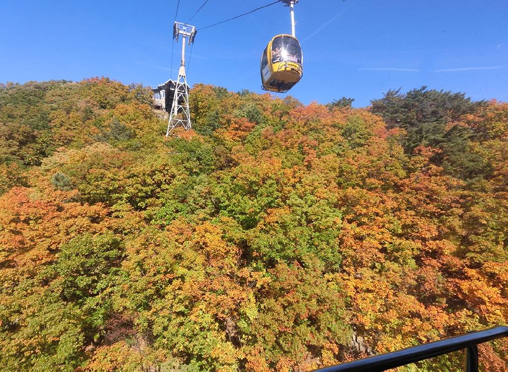 八公山位於慶山市北方,海拔高1,193m,為新羅時代被稱為中嶽、父嶽的名山,擁有冠峰石造如來坐像(笠岩)、元曉寺、天成寺、佛窟寺等眾多新羅古剎與文化遺跡。纜車因為坡度陡、纜繩長度較長,所以在欣賞風景的同時,還給人像是搭乘遊樂器材的刺激感。纜車的終站位於新林峰的山頂,這裡與毘盧峰山頂的祭天壇、東邊的冠峰(笠岩)大佛齊名,是祈福的代表性聖地。纜車的終站與祭天壇和大邱世界盃競技場呈一直線,整個地勢像是鳳凰張翼高飛的樣子,而纜車位於正中間,在風水學上為塊聖地。
