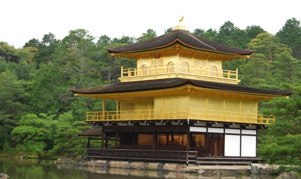 ●【金閣寺】正式名稱為鹿苑寺,為足利義滿於1397年所建造的山上別墅,1950年時,因一名年輕僧侶放火而完全燒毀,於1955年重建,到了1987年,日本政府又斥資7億日圓,耗用20萬張金箔紙貼在其上,在陽光照耀下金碧輝煌,絢麗奪目。金閣寺除了是知名的觀光旅遊景點之外,也被日本政府指定為國寶,並於1994年以「古都京都的文化財」的一部份被聯合國教科文組織指定為世界文化遺產的重要歷史建築。